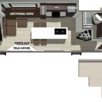 - The opposite side offers a two-person dinette that easily converts into a second 31″ x 79″ twin bed, perfect for campers up to 6’6″.