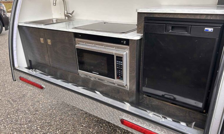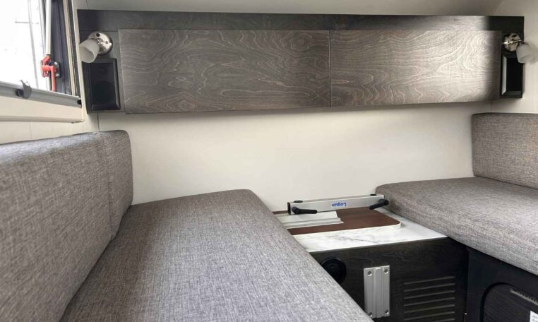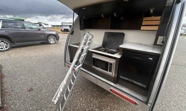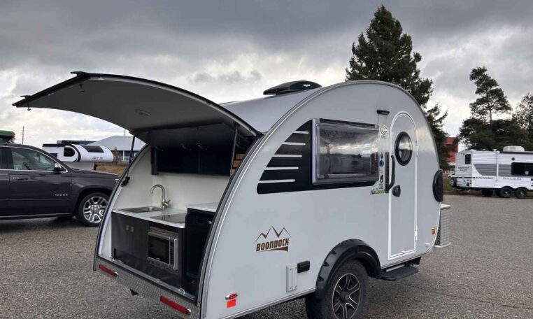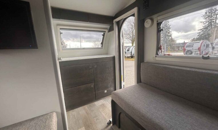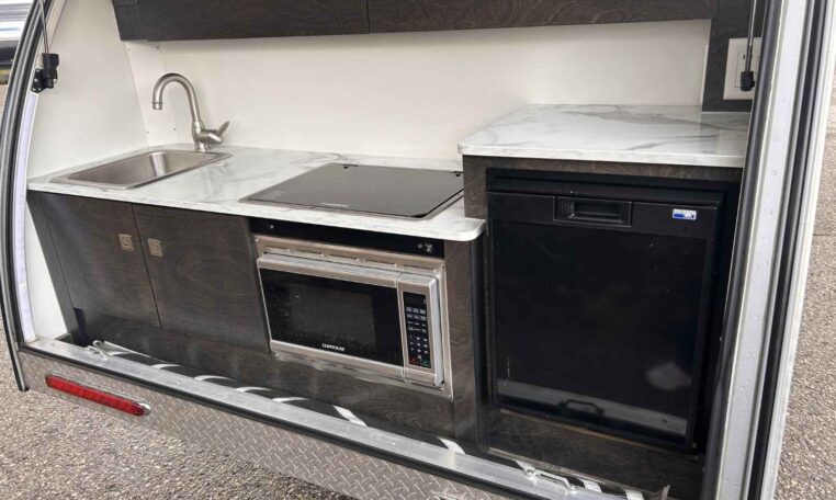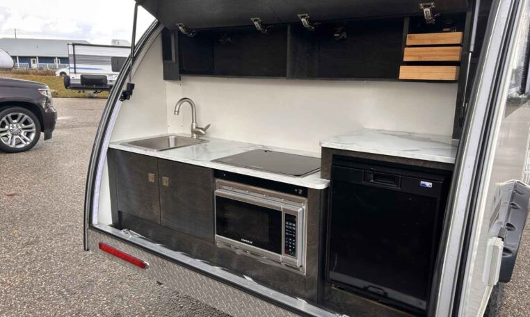 The TAB teardrop camper trailer is the iconic teardrop that sets the trend for all others to follow. This popular unit is just the right size for a weekend jaunt or an extended camping adventure. Inside, you’ll find a galley kitchen and u-shaped dinette that converts to a comfortable sleeping area. There is also a wet bath – complete with a toilet, sink, and shower. The TAB has everything you need to make camping even more enjoyable!