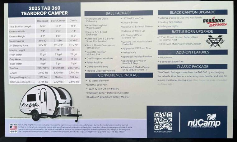 2025 TAB 360 CS TEARDROP CAMPER SPECS*