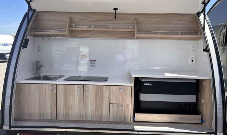 If you love cooking and socializing outdoors, the TAB 360 CS Teardrop Camper is specifically made for you. We took our award-winning TAB 360 Teardrop Camper, moved the well-equipped kitchen to the outside, and added a convenient hatch door to create the ultimate teardrop clamshell camper.