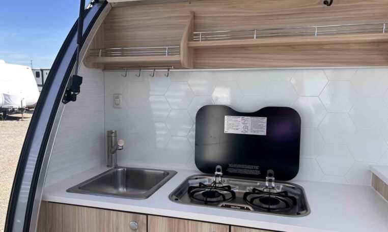 This sleek and versatile teardrop RV offers comfort, convenience, and Ohio-Amish quality craftsmanship – all in a sleek clamshell teardrop design that maximizes space.