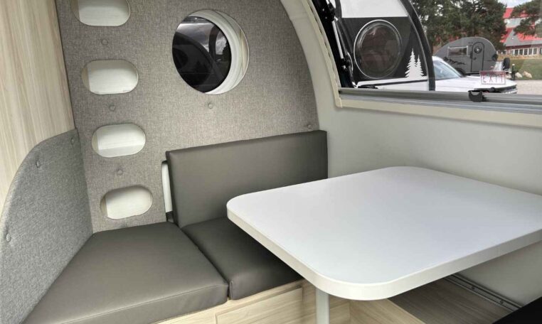 The TAB 400 Teardrop Camper is perfect for those seeking extended camping trips and adventures. It provides ample space and includes all the essentials without sacrificing design or quality. Inside, you’ll find a dedicated queen-size sleeping area, a spacious wet bath, a fully equipped galley kitchen, plenty of storage, and a dinette that can be converted into a second sleeping area.