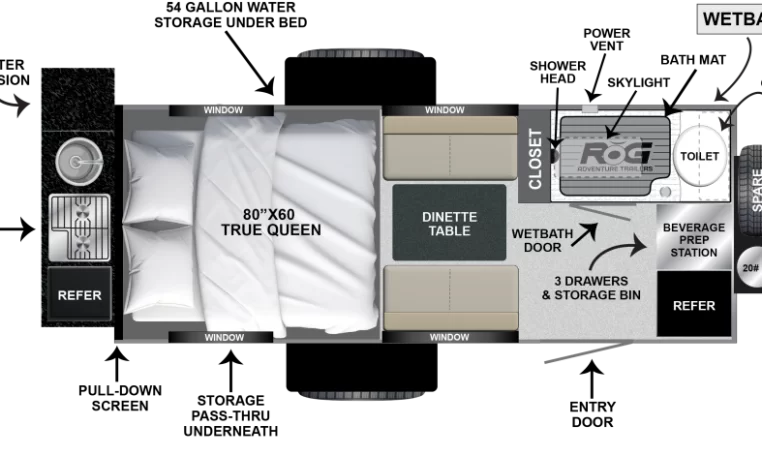 Introducing the RŎG 16FB—a groundbreaking Adventure Trailer that redefines outdoor exploration with a host of premium amenities. This is Encore’s inaugural trailer featuring a full wet bath, complemented by a myriad of other exceptional features, setting it apart in a class of its own!