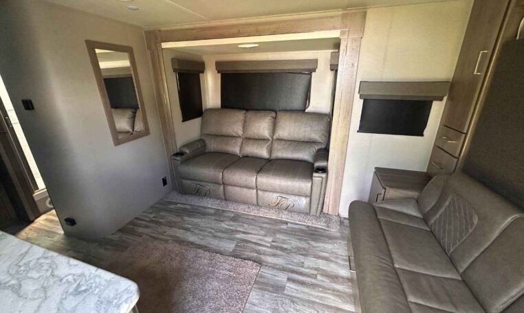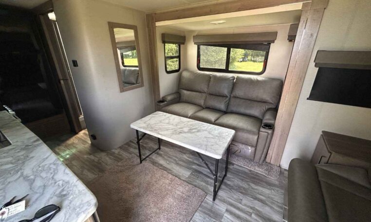 Let your imagination run wild with the possibilities that the Grand Design Imagine XLS travel trailer can provide! The Imagine XLS has been built with oversized tank capacities, an extra-large 2″ fresh water drain valve, a ducted A/C system, a power tongue jack, and a heated and enclosed underbelly with suspended tanks. There is a designated heat duct to the subfloor and a residential ductless heating system throughout. For outdoor adventures, the electric awning with LED lights will enable you to stay protected, and the Tuff-Ply pass-thru flooring will withstand your many adventures.