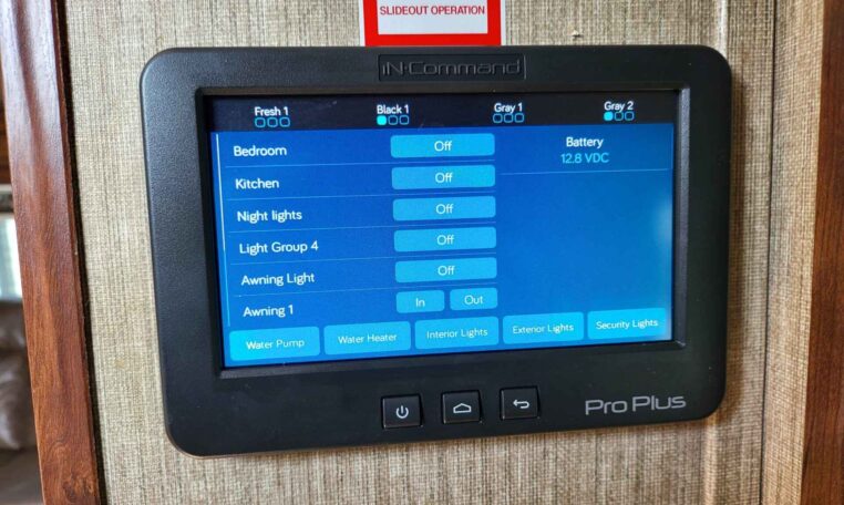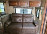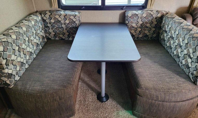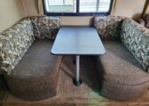 In the combined kitchen and living area you will love the space provided by the large slide out booth dinette and sofa sleeper. The sofa offers overhead storage, plus both can be quickly converted to sleeping space at night.